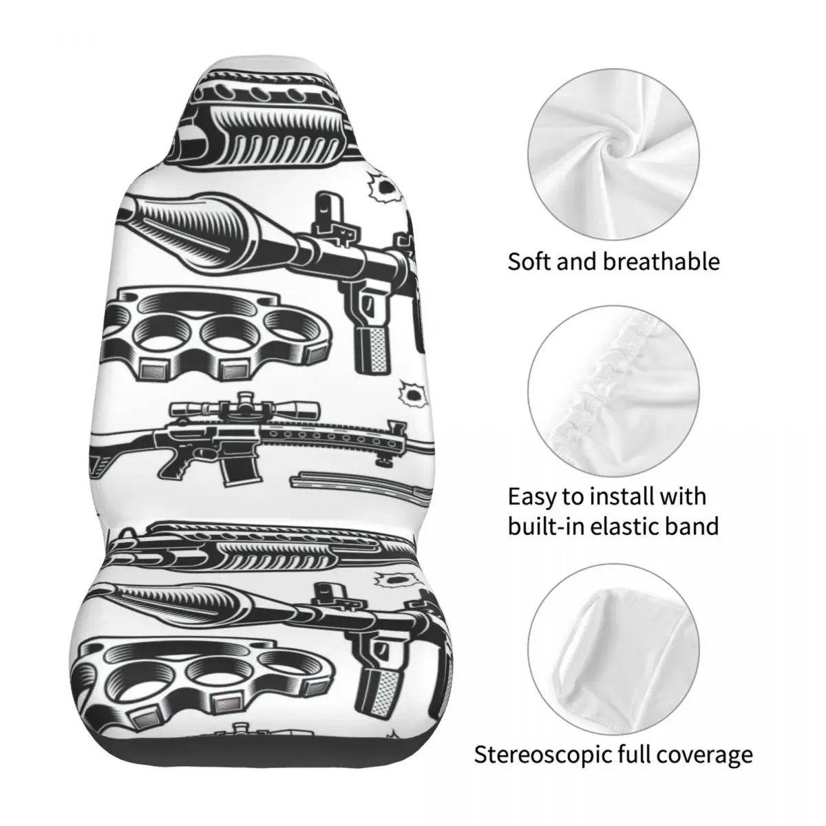 Отзывы о Набор черно-белых чехлов на сиденья автомобиля векторное оружие универсальные
