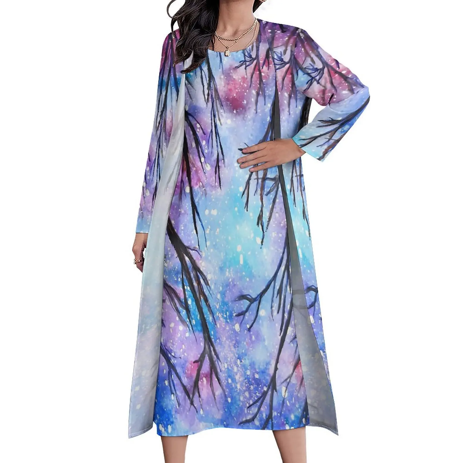Платье-макси с длинным рукавом и принтом Звездная ночь - купить