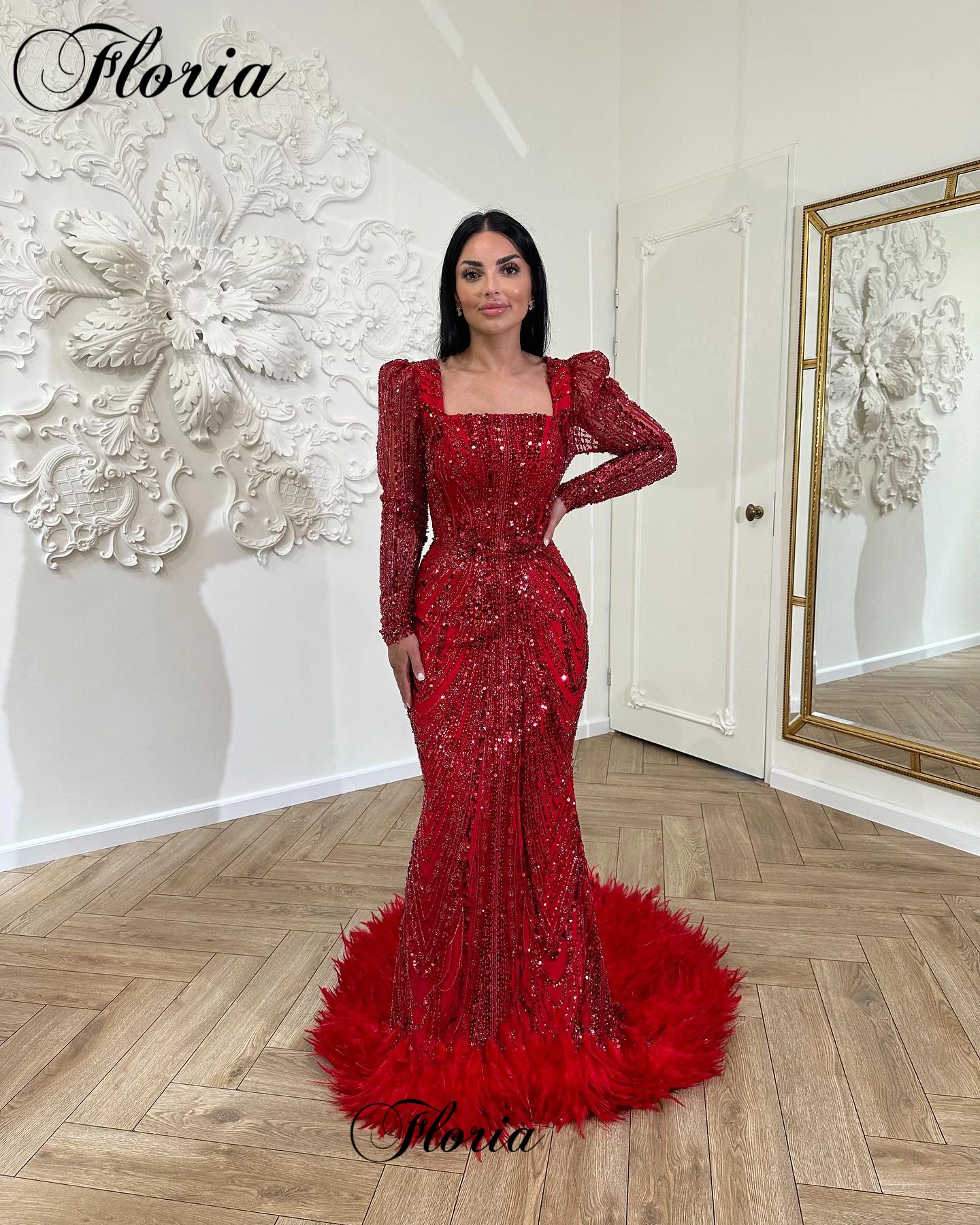 Красные вечерние платья с бусинами платье юбкой-годе Среднего Востока длинным - купить
