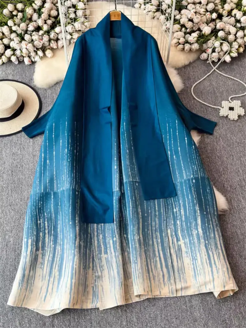 Стильная свободная и длинная куртка с градиентной завязкой рукавами летучая - купить