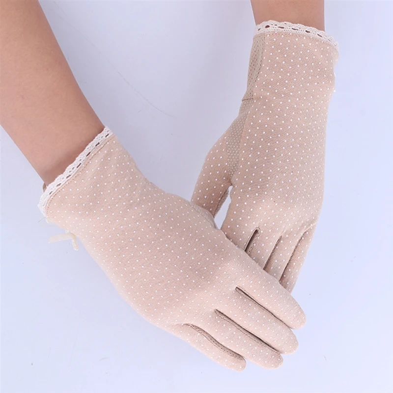 Перчатки женские солнцезащитные тонкие хлопковые летние митенки в горошек с - купить