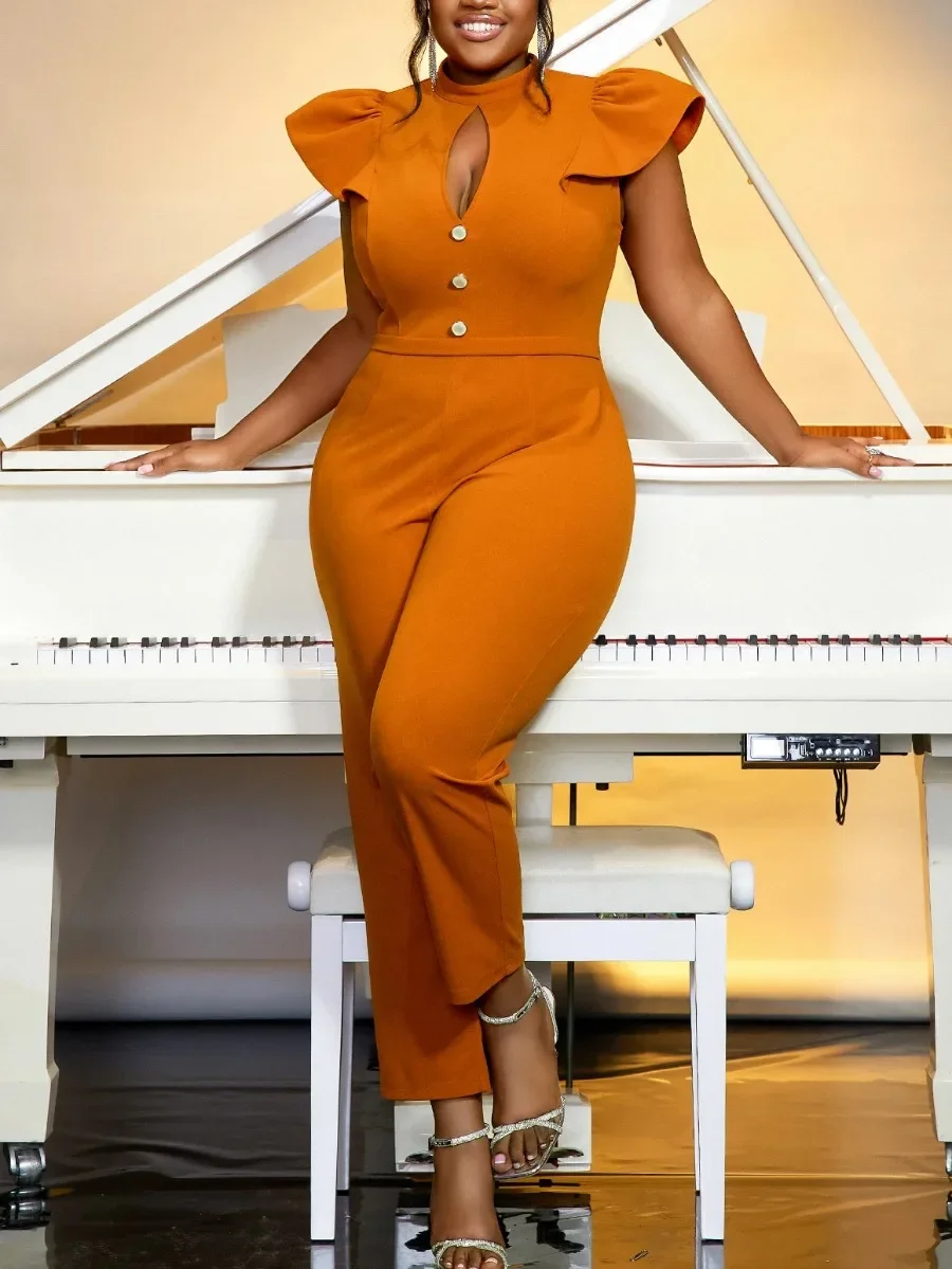 Женский коричневый комбинезон сексуальный с вырезами на груди тонкие пуговицы - купить