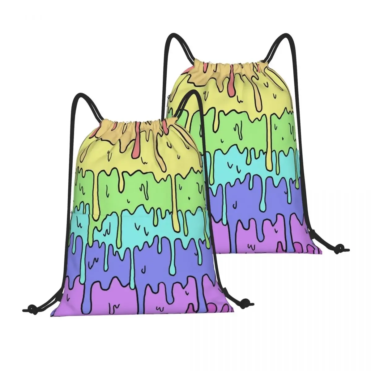 Plecak ze sznurkiem Pastel Kawaii Melting Rainbow Torba na ramię Kieszeń suwak Sportowa i podróżna torba wędrówki Portables - купить