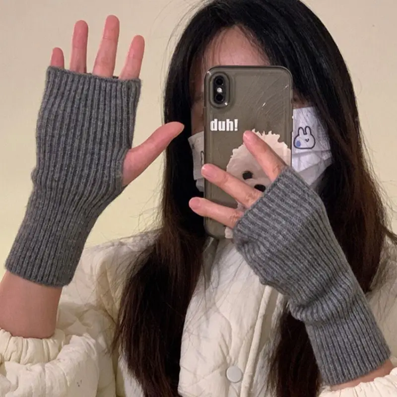 Новинка Весна 2024 Y2K милые вязаные митенки с длинным рукавом перчатки без пальцев - купить