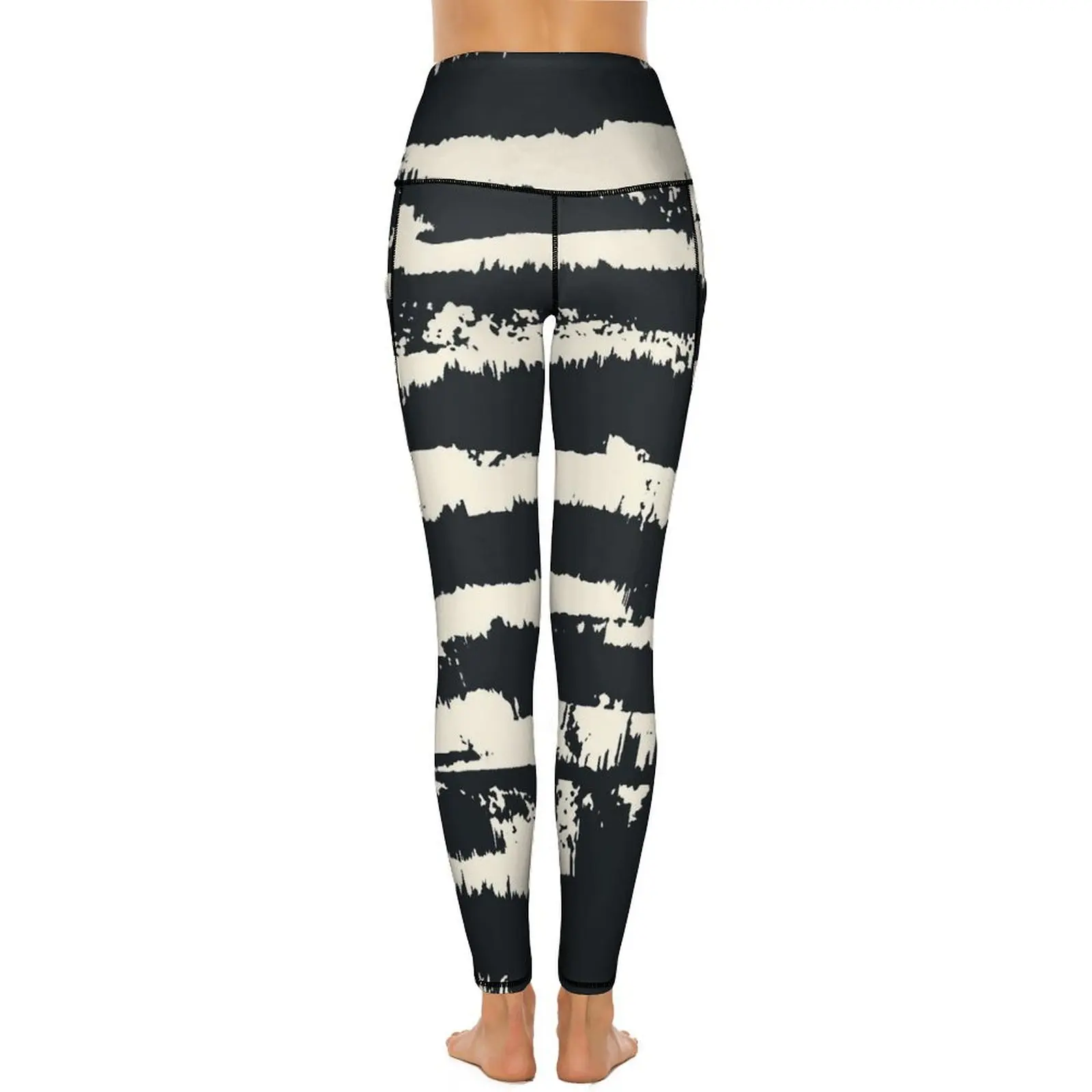 Леггинсы черные в абстрактную полоску с высокой талией - купить