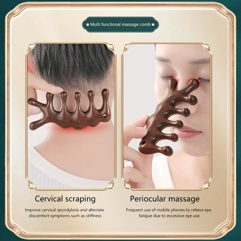 Массажная расческа из дерева Sandalo с пятью зубцами для лица носа глаз плеч шеи - купить
