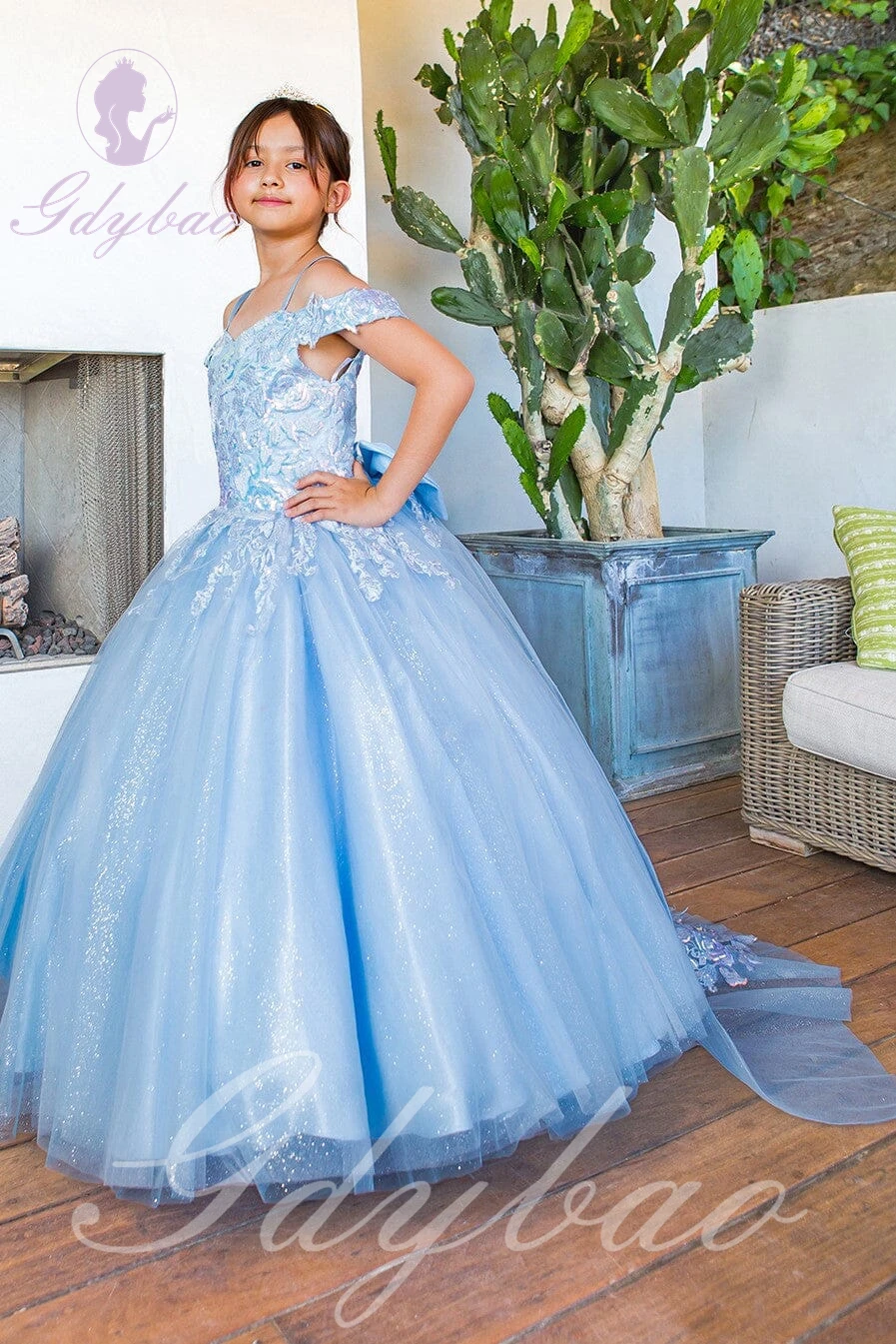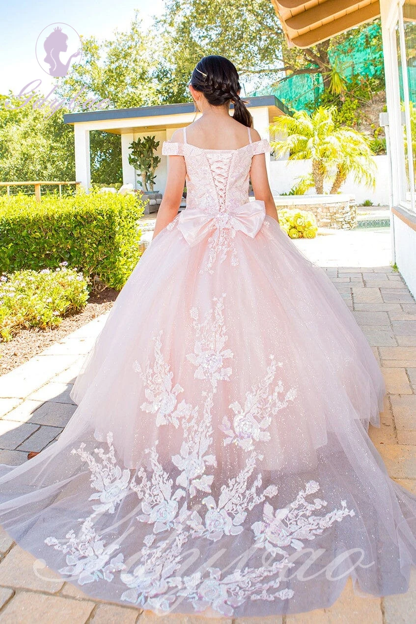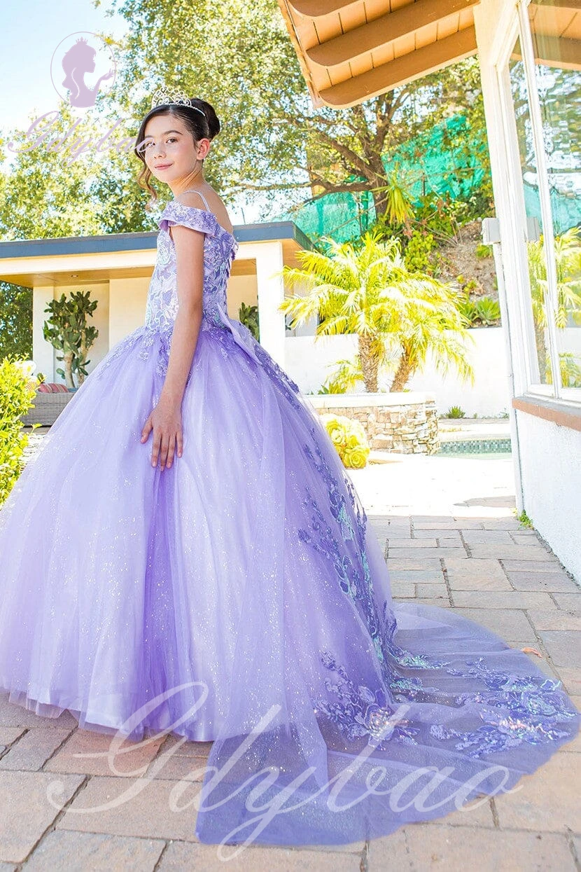 Лавандовое платье с цветочной аппликацией для девочек пышное блестящее без - купить