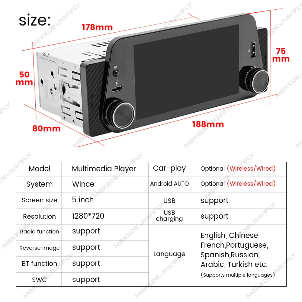 Отзывы о MEKEDE 5-дюймовый 1Din MP5-плеер с сенсорным экраном универсальный автомобильный