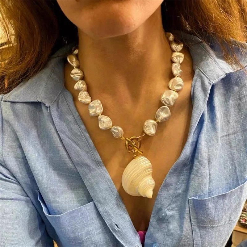 Ожерелье из пресноводного жемчуга и ракушки Стильное колье для утонченной - купить