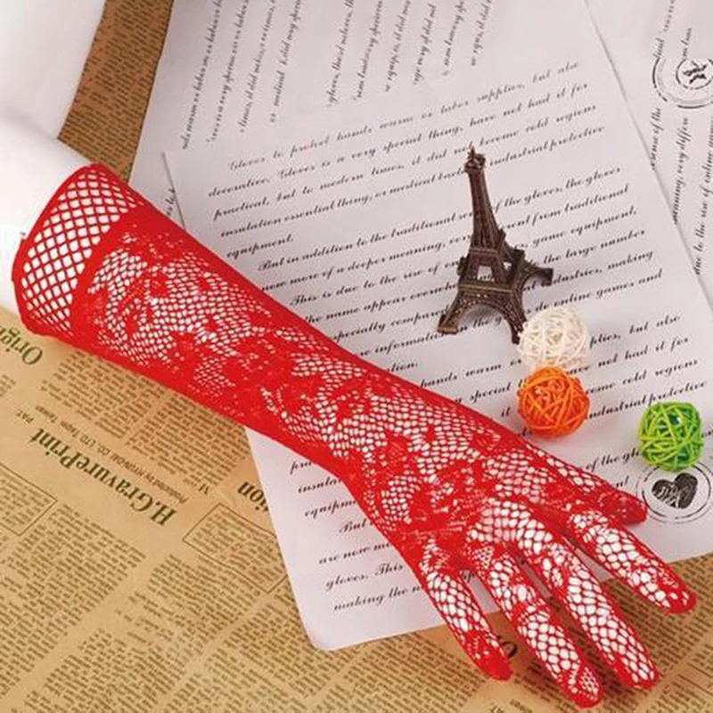 Длинные сетчатые перчатки 1 пара гладкие модные для этикета кружевные красивые - купить