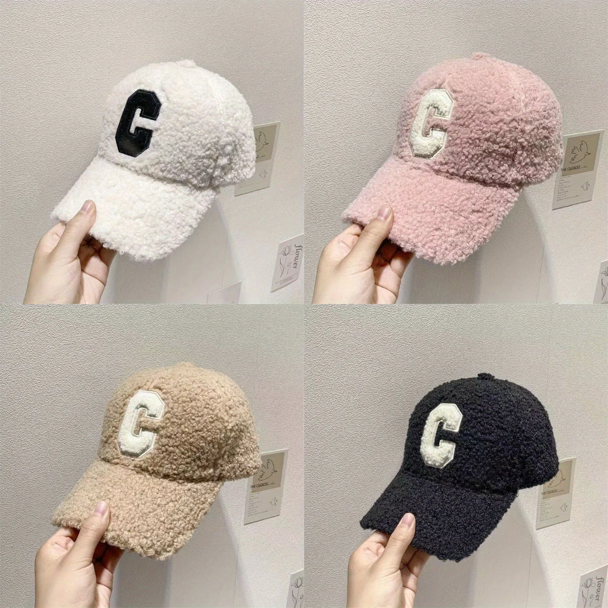Зимняя женская теплая и утолщенная бейсболка C-образная вышивка из овечьей - купить