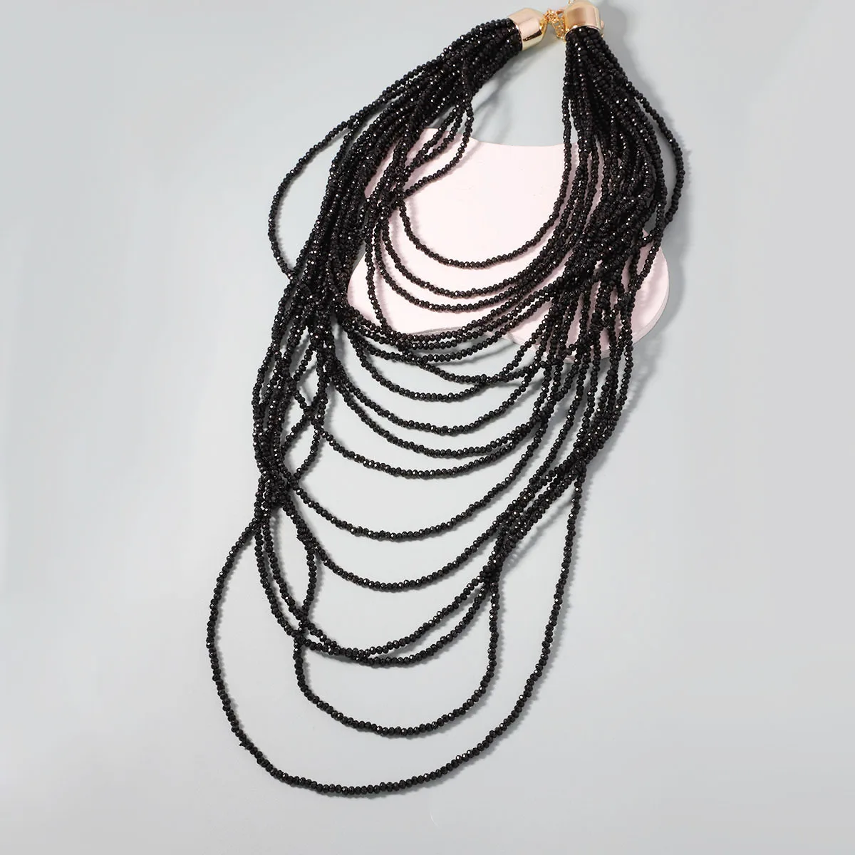 ZAA черные бусины ручной работы многослойный чокер в форме водопада ожерелья для - купить