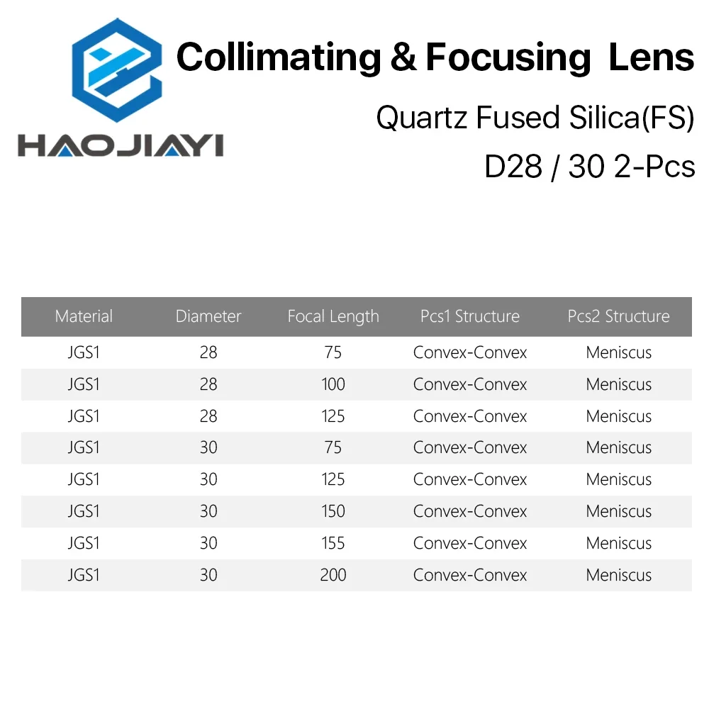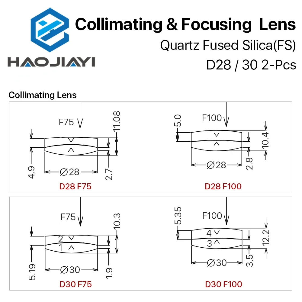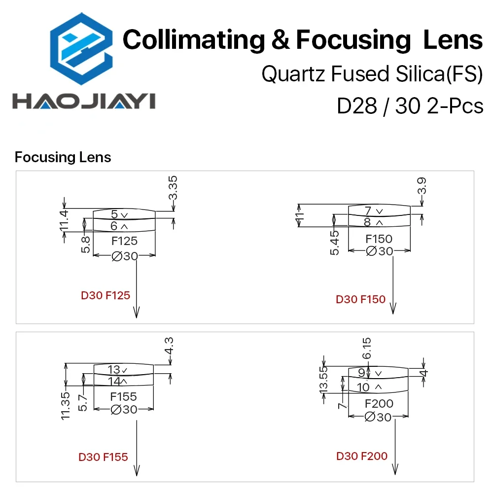 Сферический фокусирующий объектив D28 D30 F75/100/125/150/155/200 мм 2 шт. кварцевый плавленый - купить