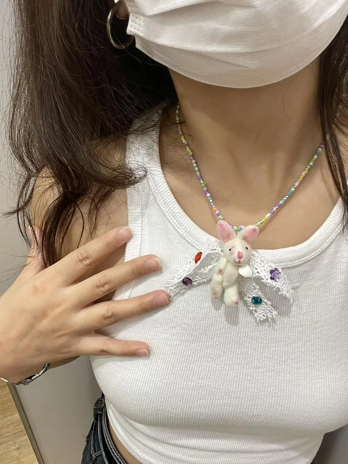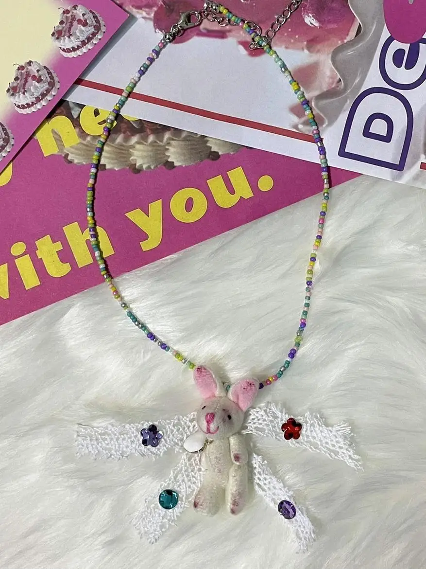 Sweet Salt-Handmade ɽir Rabbit ɼute Y2g Gyaru Beaded Cool Millennium Sle Japan fashion Soft Girl Necklace - купить