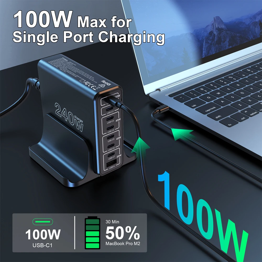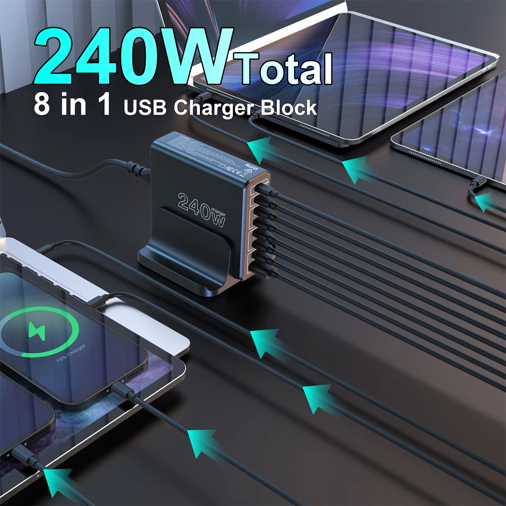 Ubigbuy 240 Вт GaN настольное зарядное устройство с портами USB-C быстрая зарядка для MacBook - купить