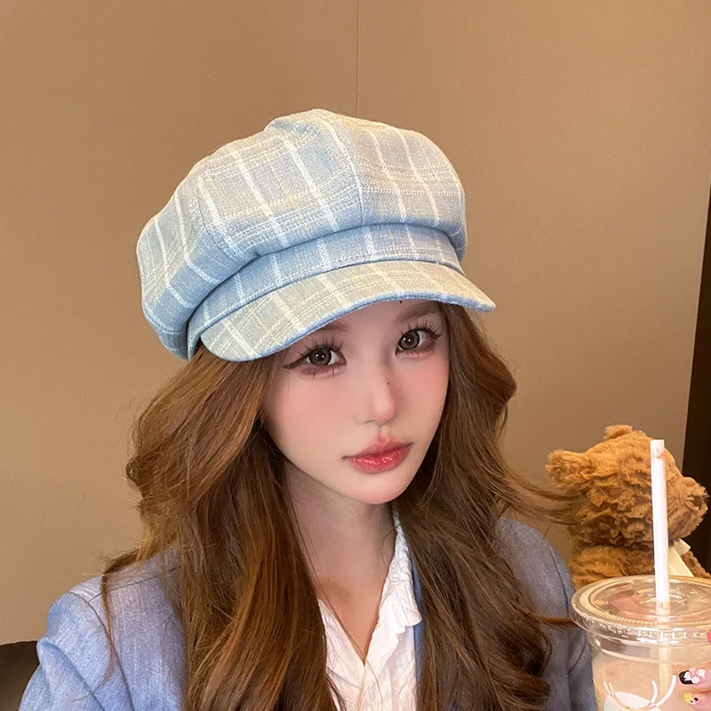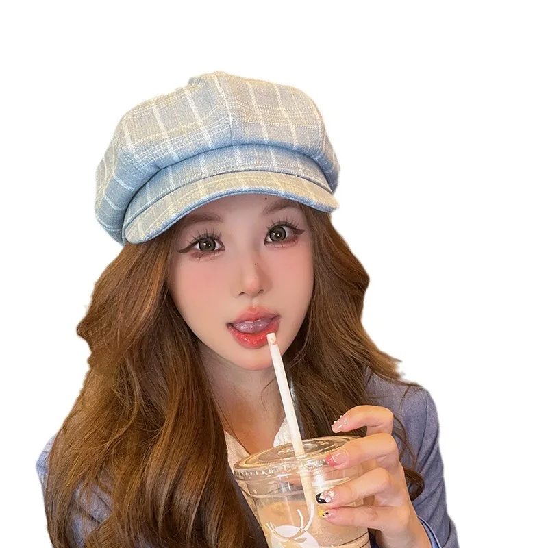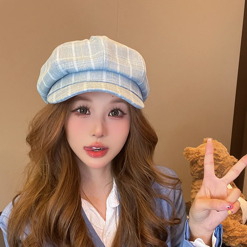Отзывы о Популярная шапка осень/зима восьмиугольная в клетку ретро-лицо маленькая