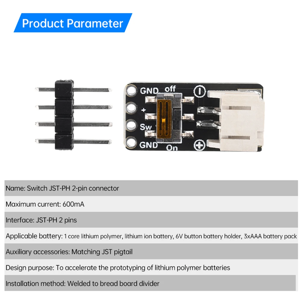 Отзывы о Переключатель 600 мА JST-PH 2-контактный разъем SMT прямоугольная коммутационная плата