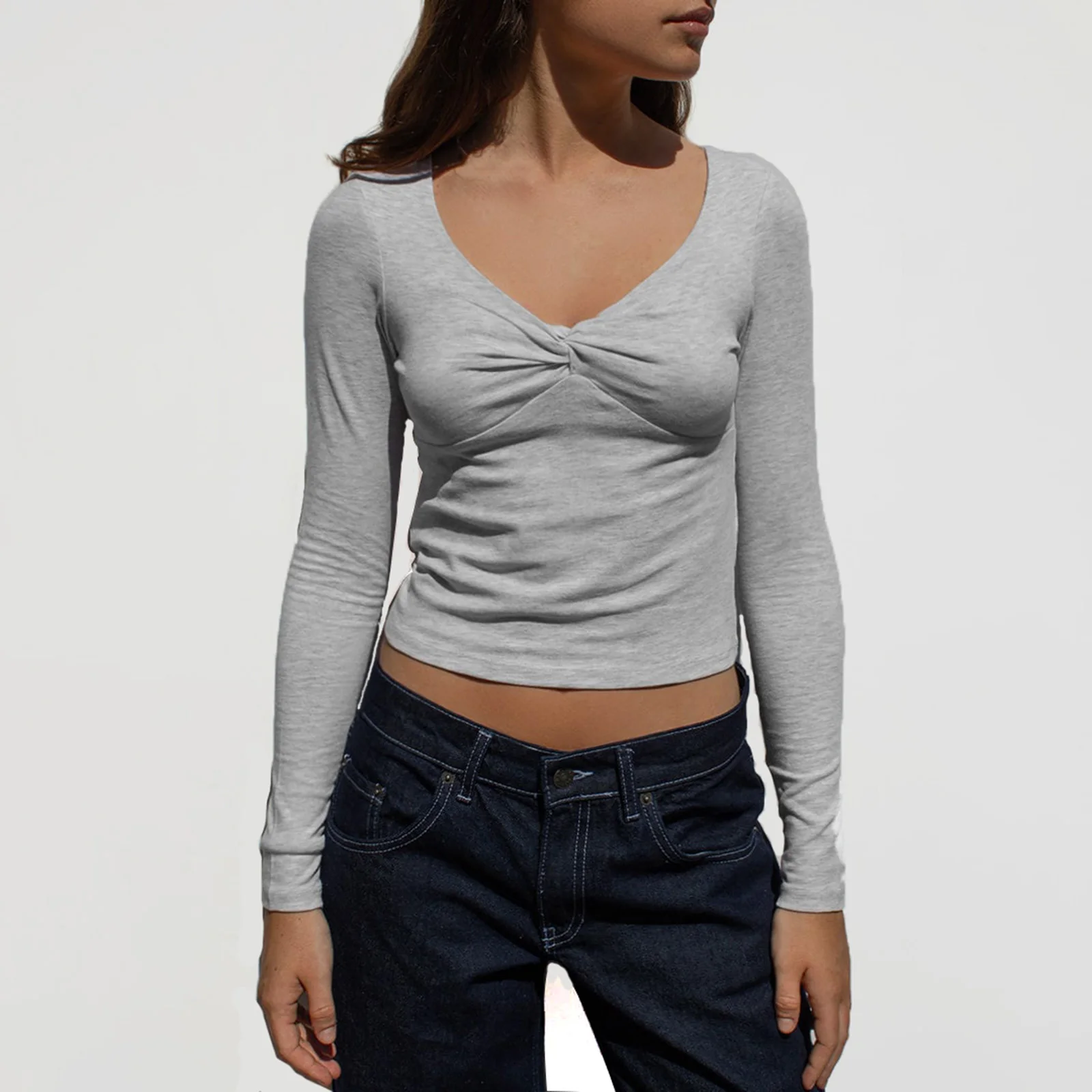Отзывы о Gaono Женский укороченный топ с V-образным вырезом и длинным рукавом в рубчик