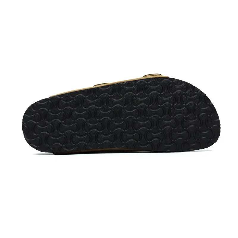 2024Flat Cork Slippers Single-buckle Sandals for men and women Casual Beach Non-slip Outside Nubuck Leather Slip on Slides Shoes - купить