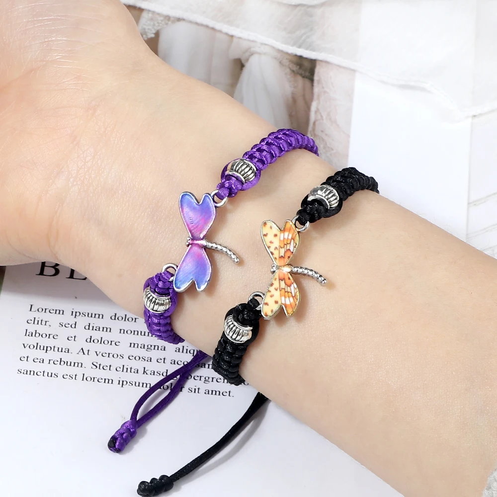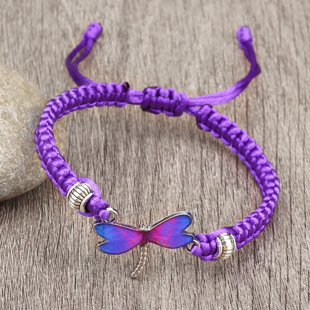 Отзывы о Винтажные фиолетовые подвески в виде стрекозы плетеные браслеты ручной работы