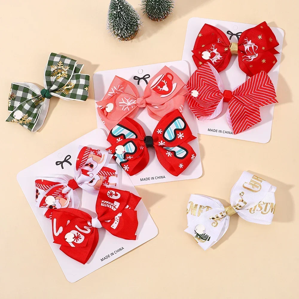 Отзывы о 2 шт./компл. заколки для волос с бантиком и рождественским принтом маленьких