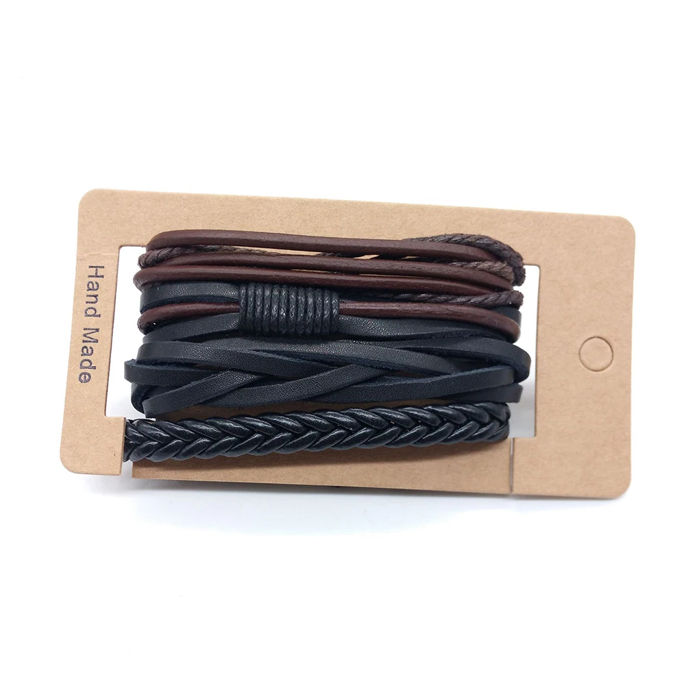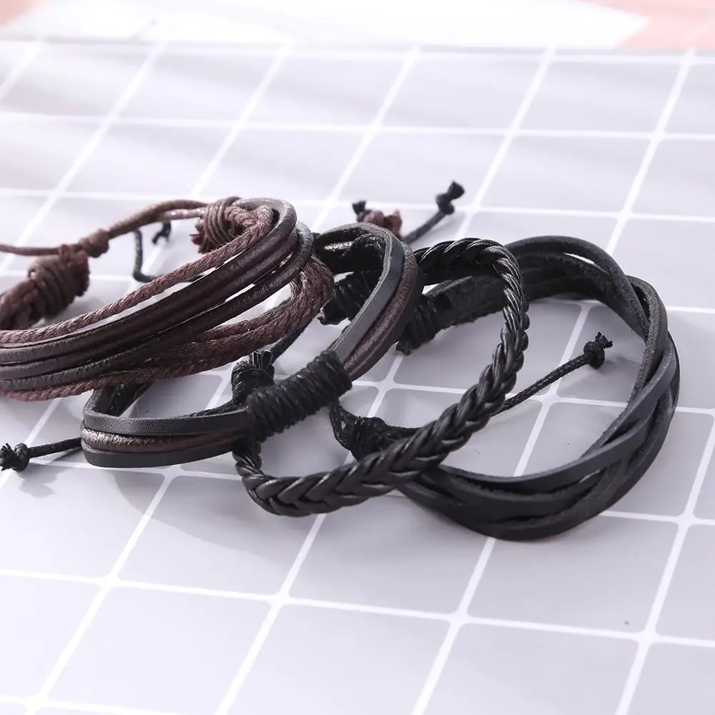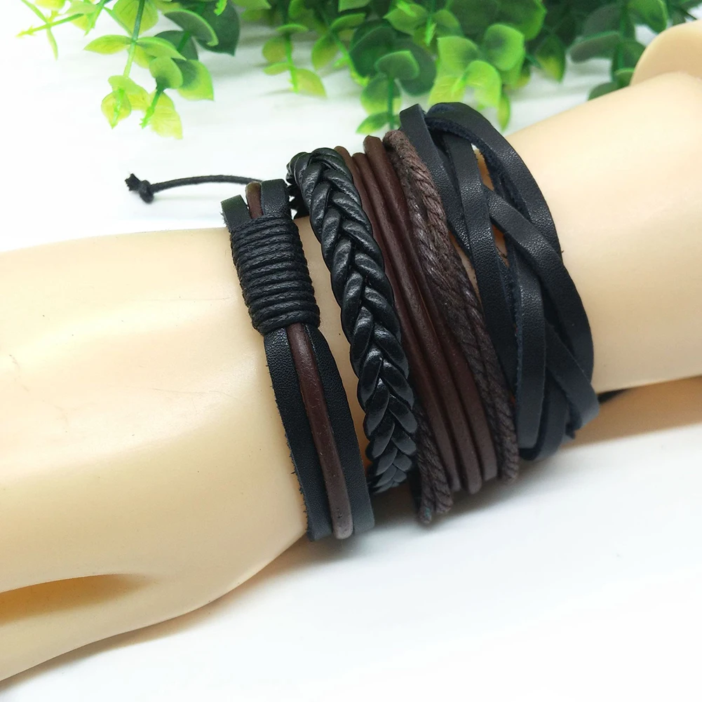 4 шт./компл. мужские плетеные кожаные браслеты этнические многослойные - купить