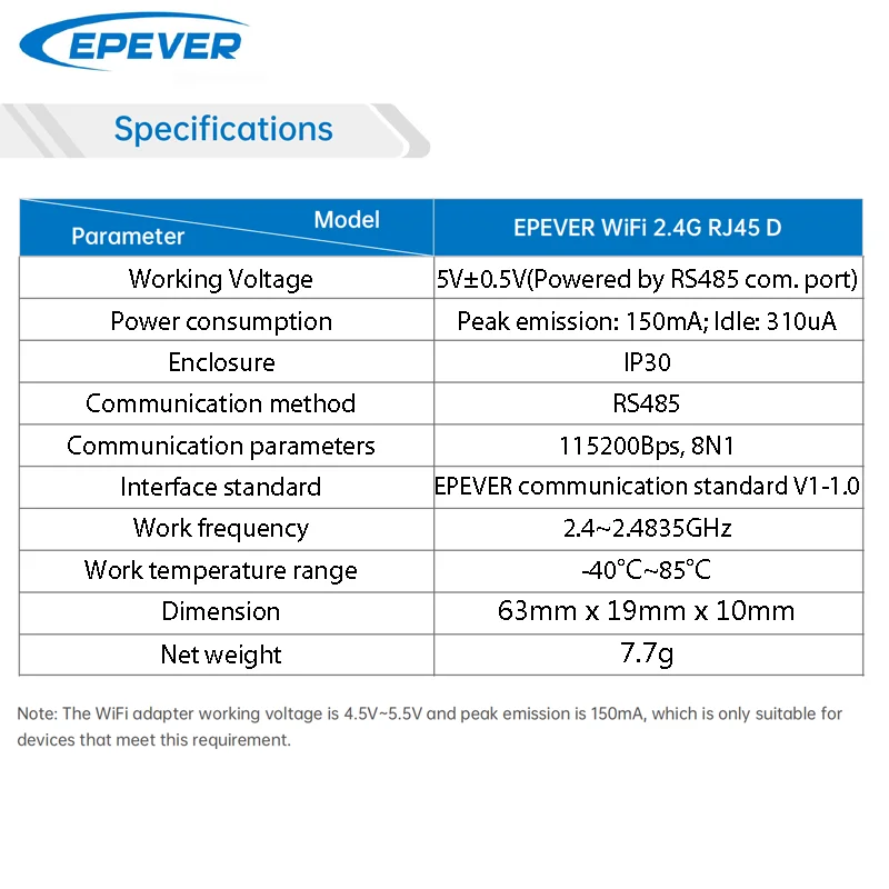 Отзывы о Адаптер Wi-fi Epever 2 4g Rj45 D Для Контроллера Заряда Солнечной Батареи Mppt Приложение