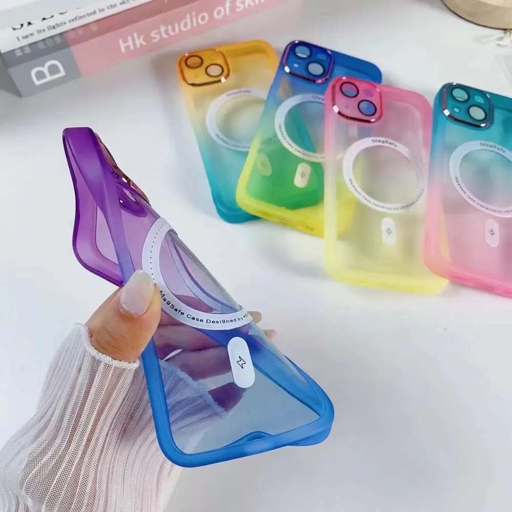Gradient Clear Magnetic Case for iPhone 16 15 14 Plus 13 12Pro Max 11 Shockrpoof Lens Film Protect Magsafe Charge Soft Cover - купить