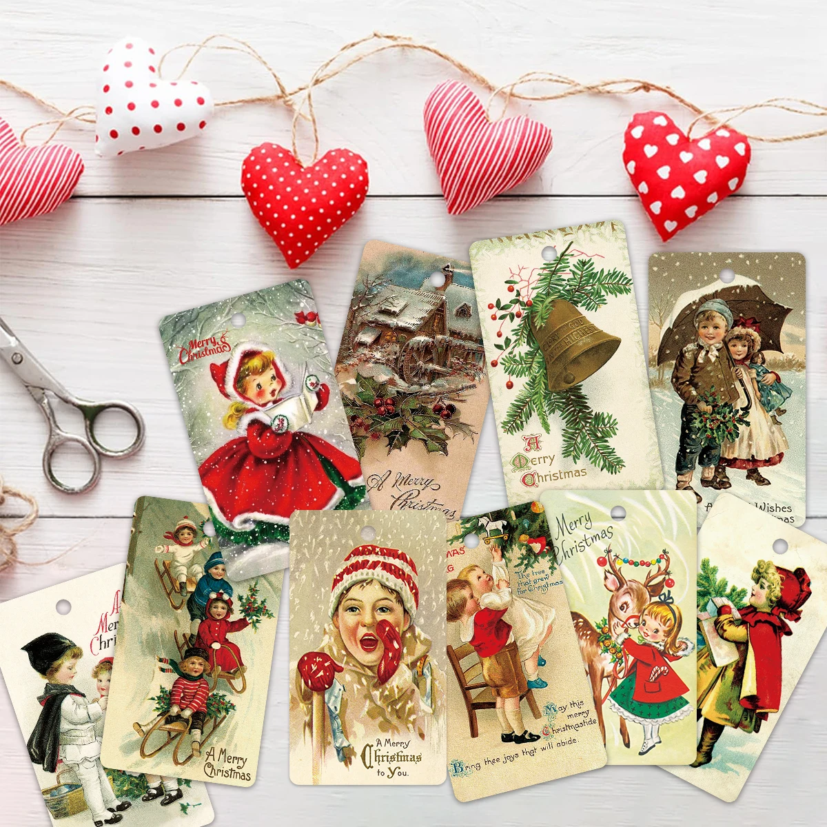 50 Шт. Винтажные Рождественские Подарочные Бирки С 10-футовой Пеньковой Веревкой - купить