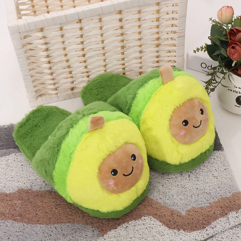 Отзывы о Милые плюшевые тапочки с авокадо теплые домашние фруктами для девочек на зиму и