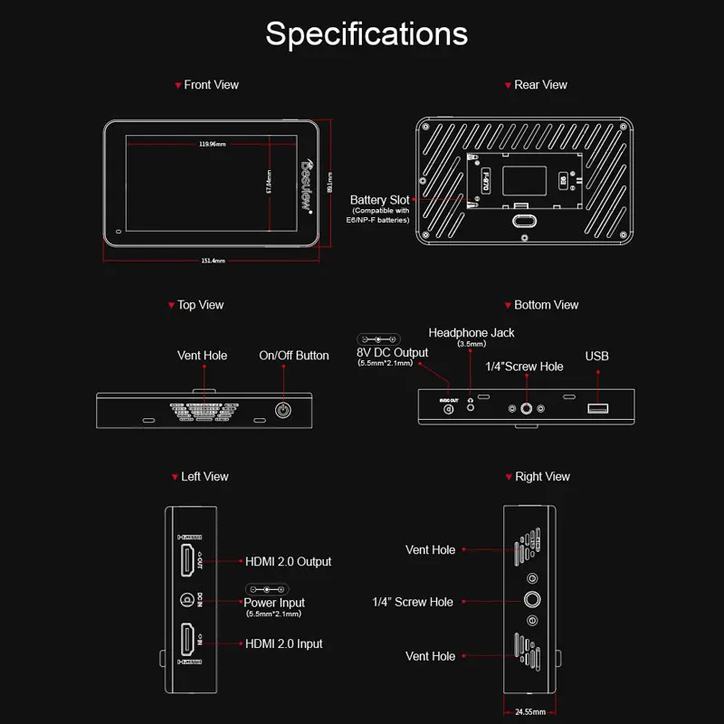 Отзывы о Bestview R6 II 5 5-дюймовый монитор UHB 4K 60P HDMI-совместимый 1920x1080 3D LUT HDR сенсорный экран на