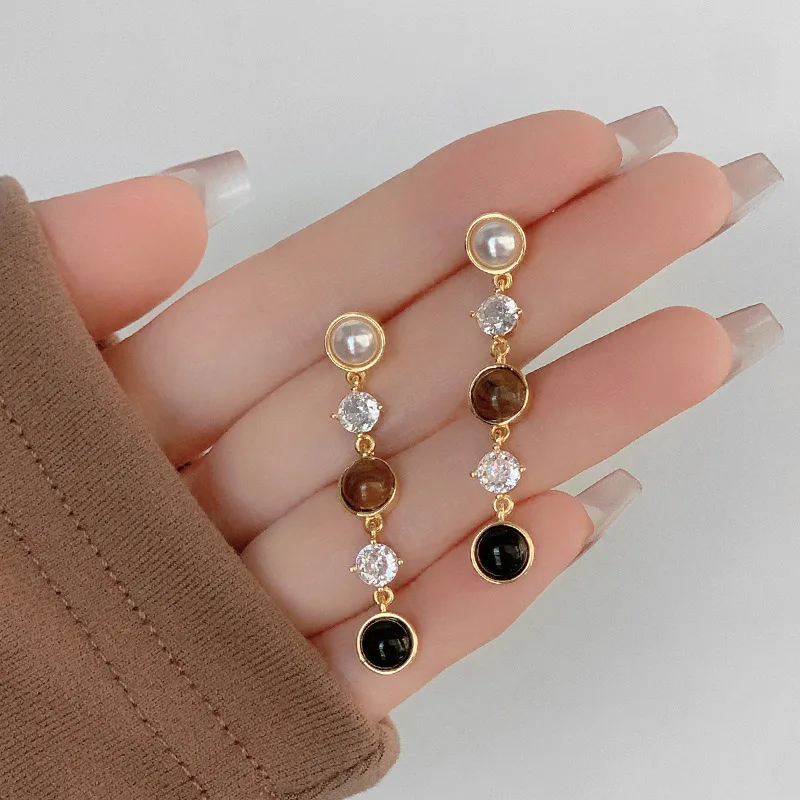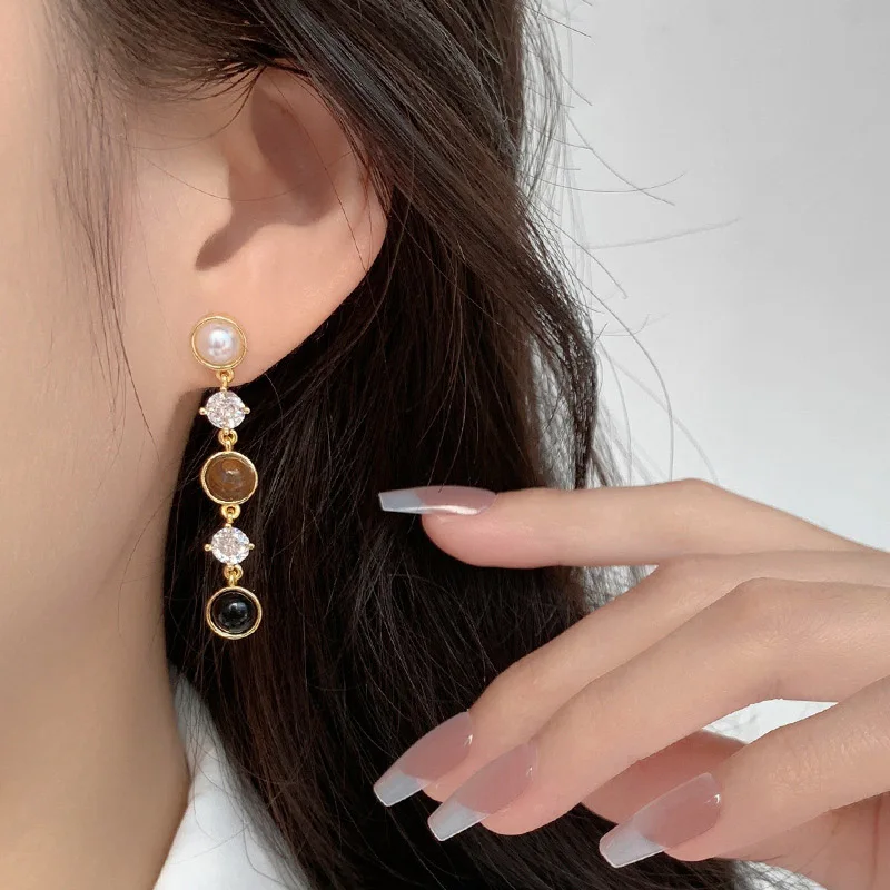 Foxanry Висячие Серьги Для Женщин С Жемчугом И Камнями Тигрового Глаза - купить