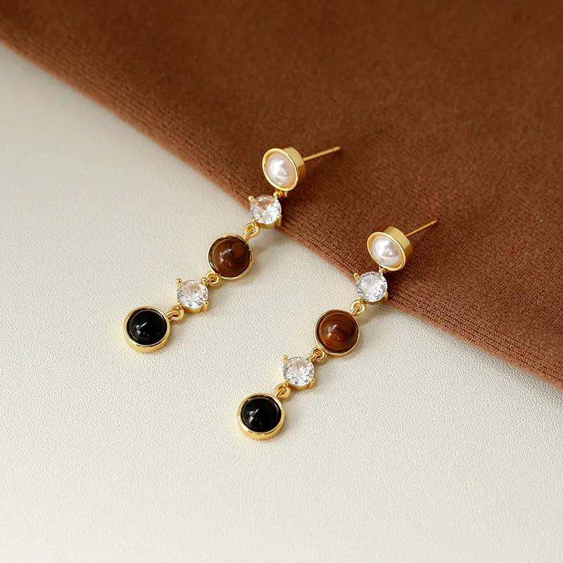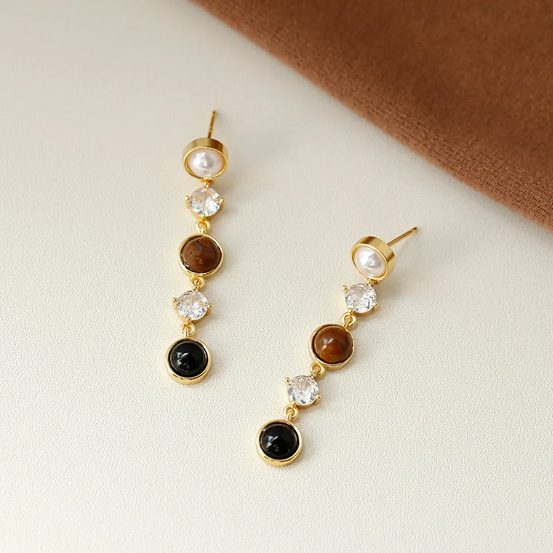 Отзывы о Foxanry Висячие Серьги Для Женщин С Жемчугом И Камнями Тигрового Глаза