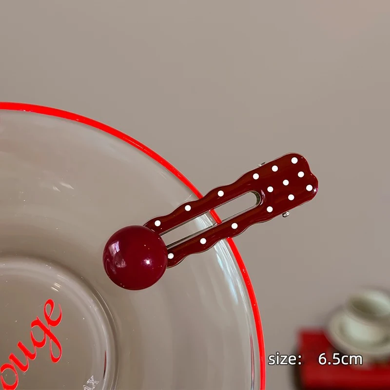 Темно-красная заколка из сплава в горошек милая для волос девочек и женщин челки - купить