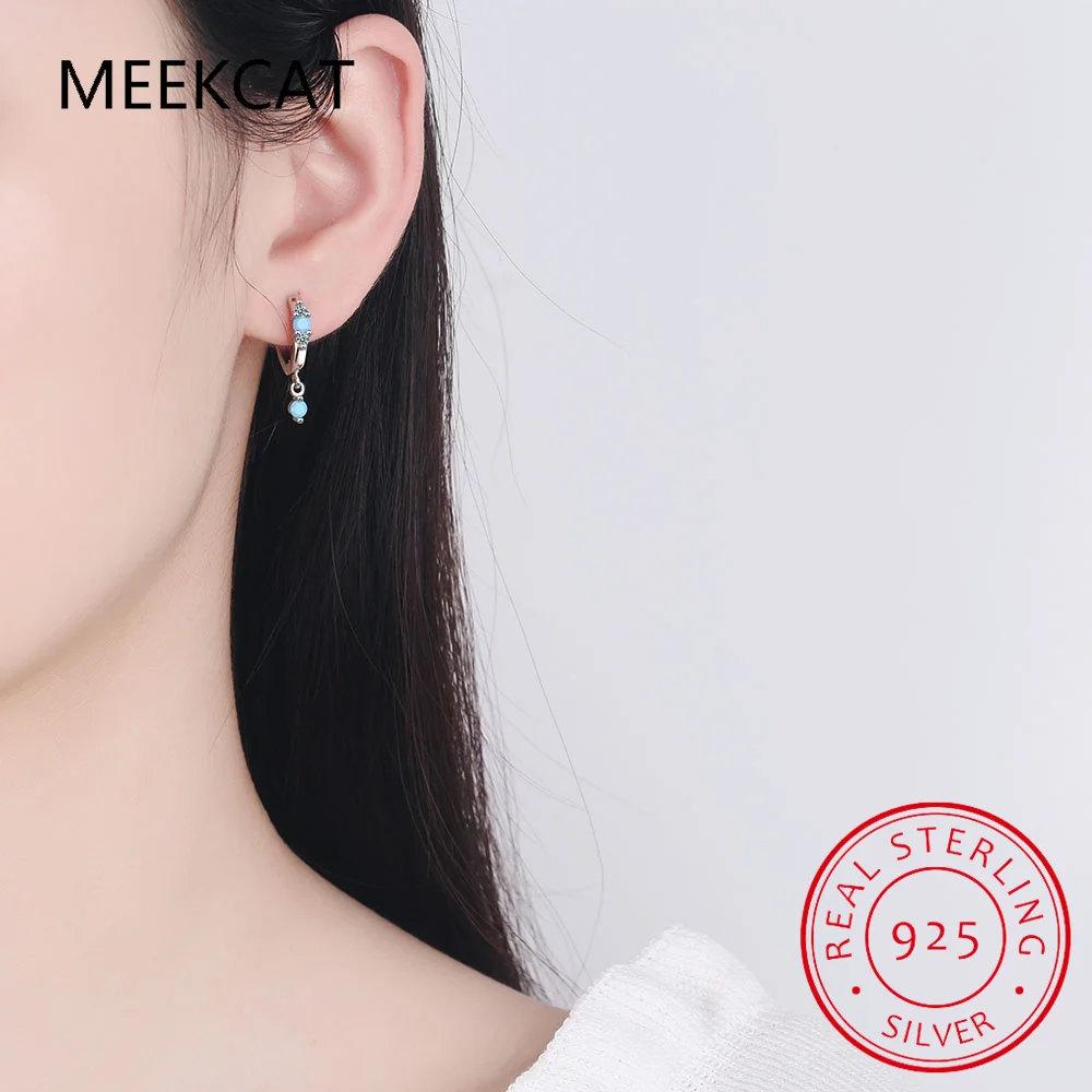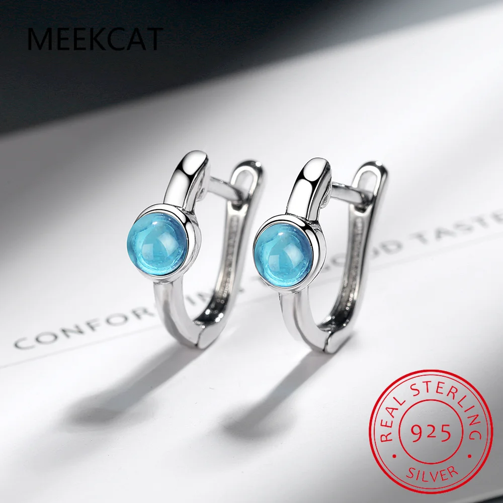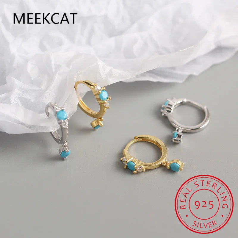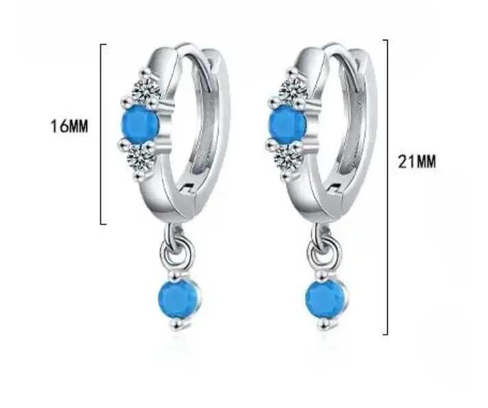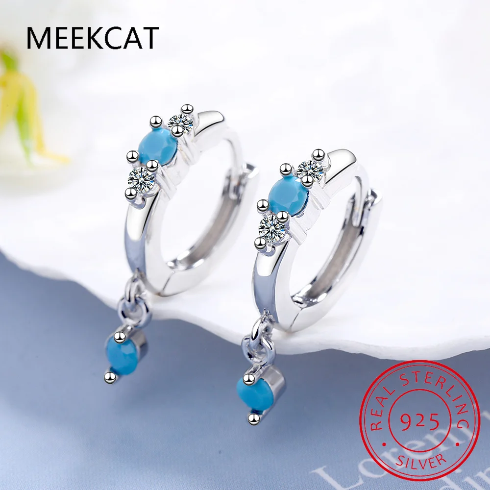 Отзывы о Blue Color Turquoises Stone Hoop Earrings for Women 925 Sterling Sliver Hanging Hoops New Drop Charms