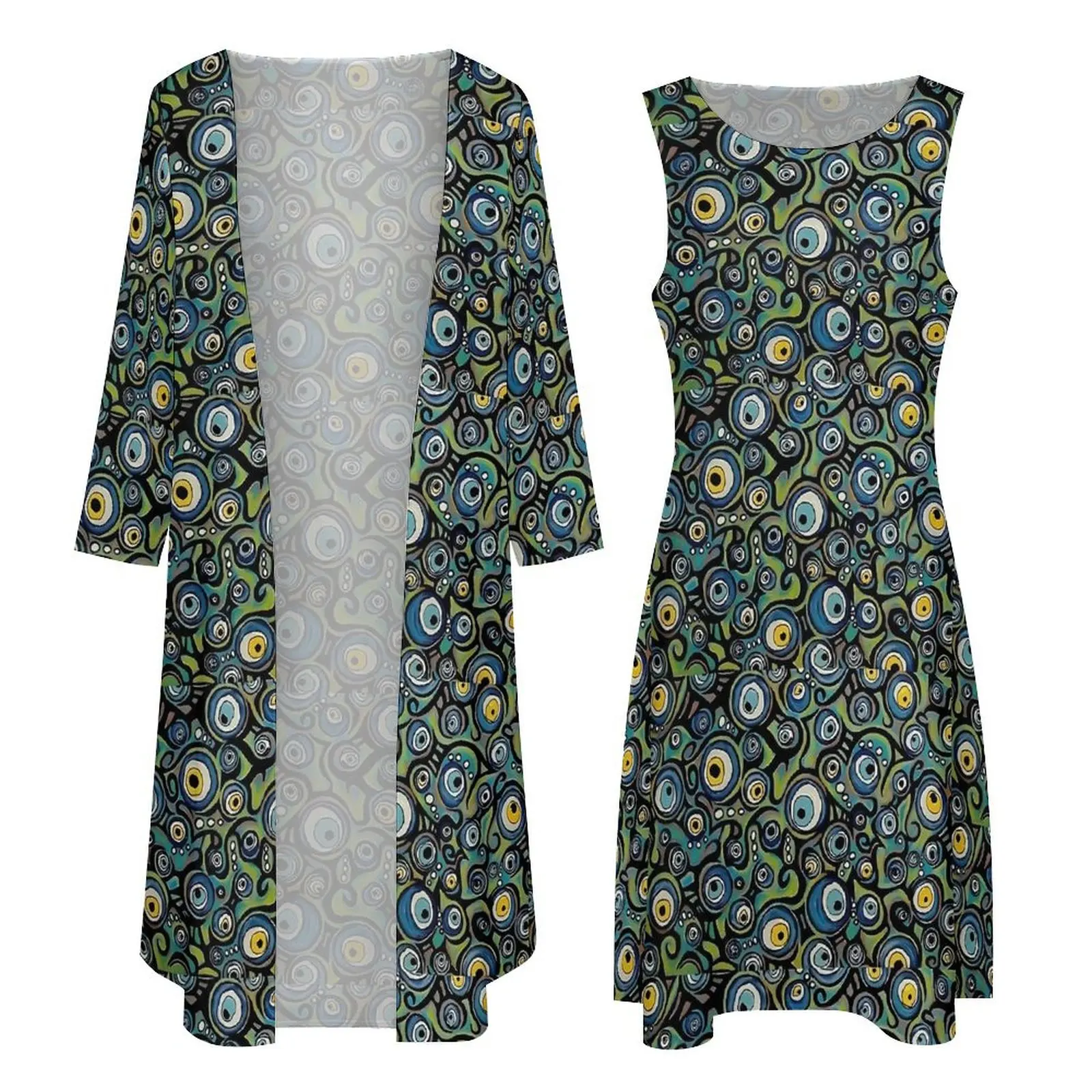 Абстрактное платье от сглаза винтажное современное макси с принтом уличная мода - купить