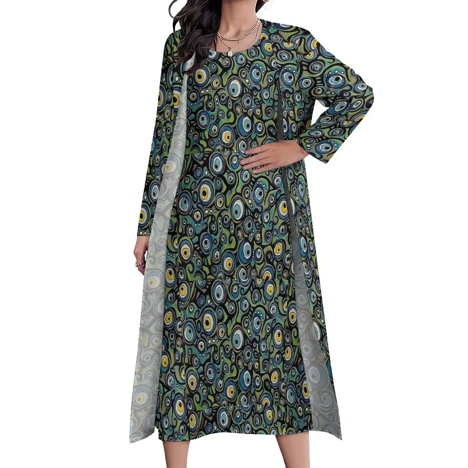 Отзывы о Абстрактное платье от сглаза винтажное современное макси с принтом уличная мода