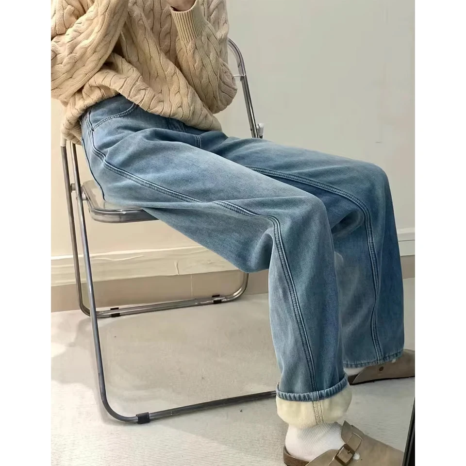 Отзывы о Зимние брюки с высокой талией на флисовой подкладке широкие джинсы теплые для