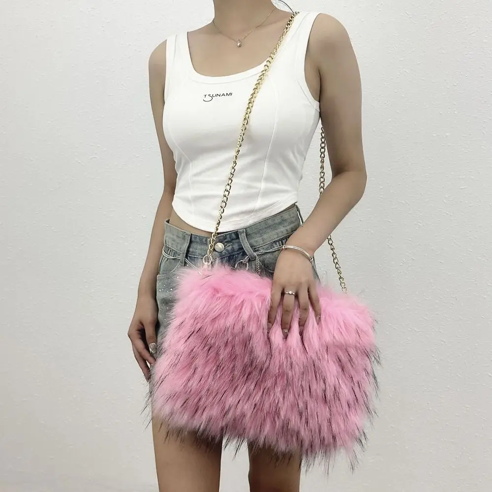 Отзывы о Модная сумка через плечо из искусственного меха с цепочками блестящая пушистая