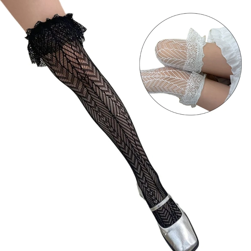 Отзывы о Женские ажурные высокие чулки до бедра милые сетчатые носки с геометрическим
