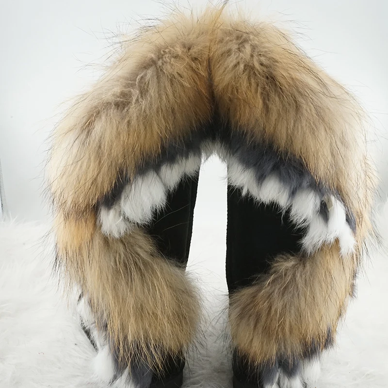 Модные женские ботинки из натурального лисьего меха высокие зимние натуральной - купить