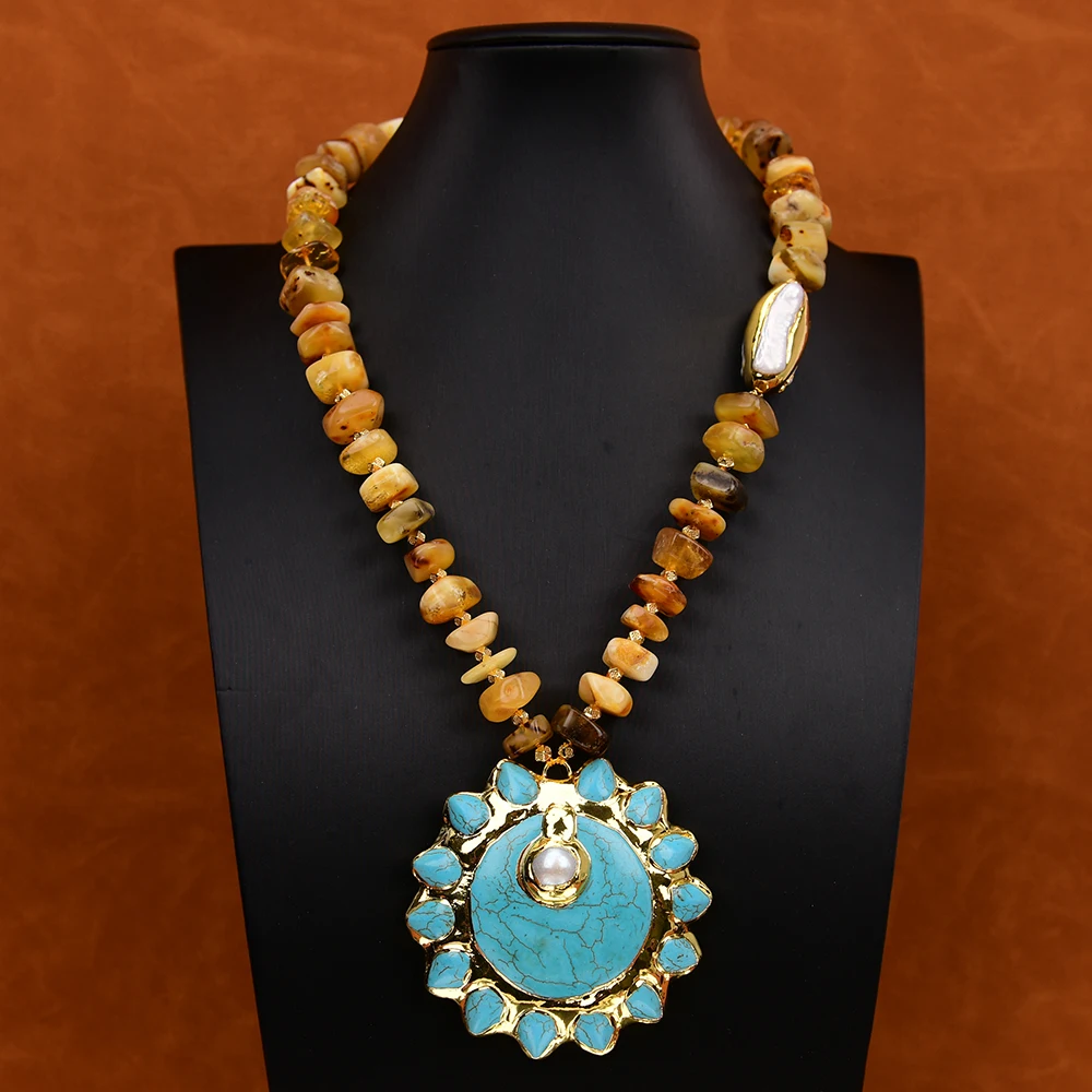 G-G настоящее желтое янтарное дисковое культивированное белое жемчужное ожерелье - купить