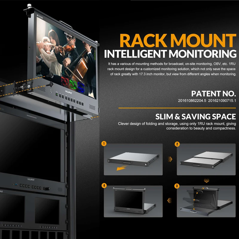LILLIPUT RM1731S-12G 17 3 дюйма 1920x1080 300cd/m2 4×12G-SDI 1RU Выдвижной монитор для монтажа в стойку с - купить