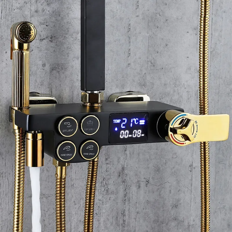 Термостатический душевой набор Senducs для ванной комнаты латунь черное золото - купить