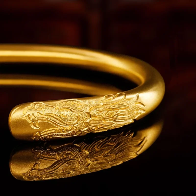 Настоящее золото 9999 желтое 24 карата Longyue Fengming древний метод гравированный - купить
