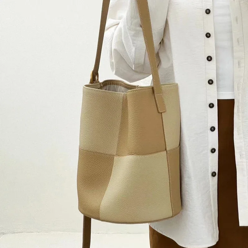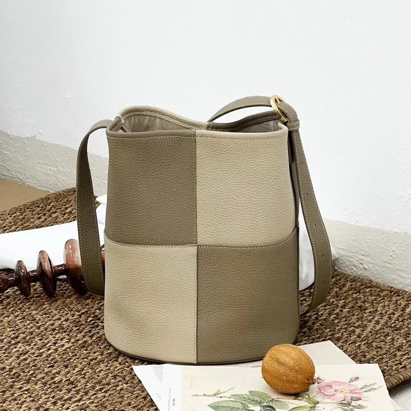 Отзывы о Клетчатая сумка-ведро с блочной решеткой сращивание цвета модная сумка через