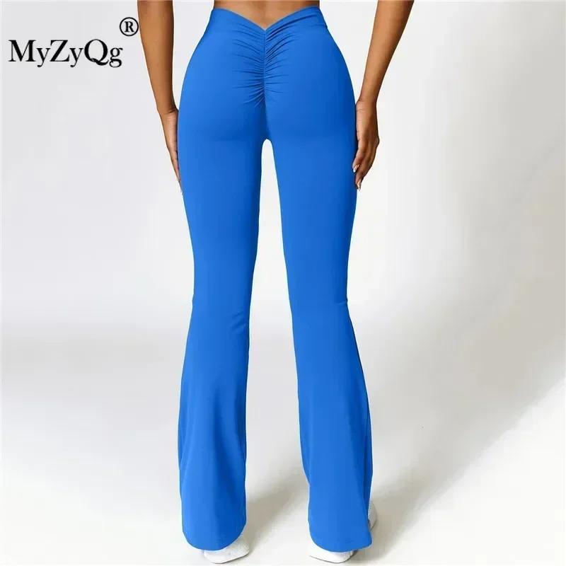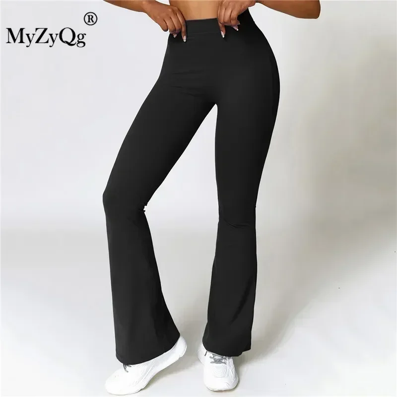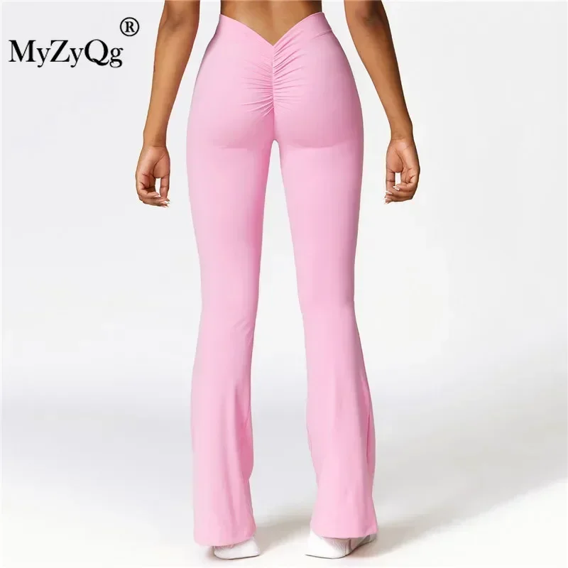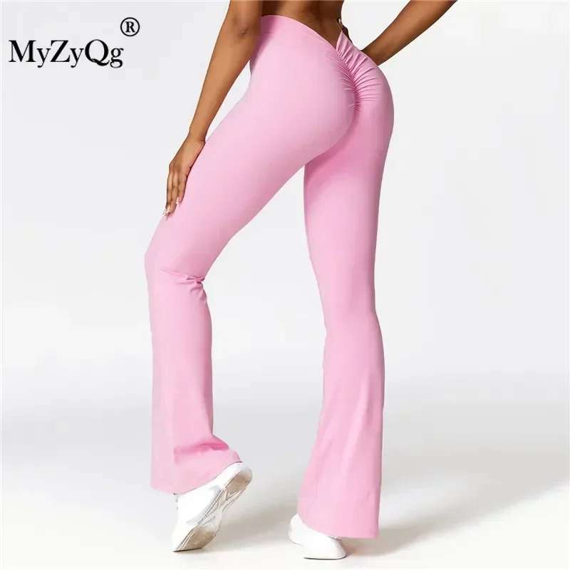 MyZyQg Женские брюки-клеш для йоги персикового цвета с подтяжкой бедер широкие - купить