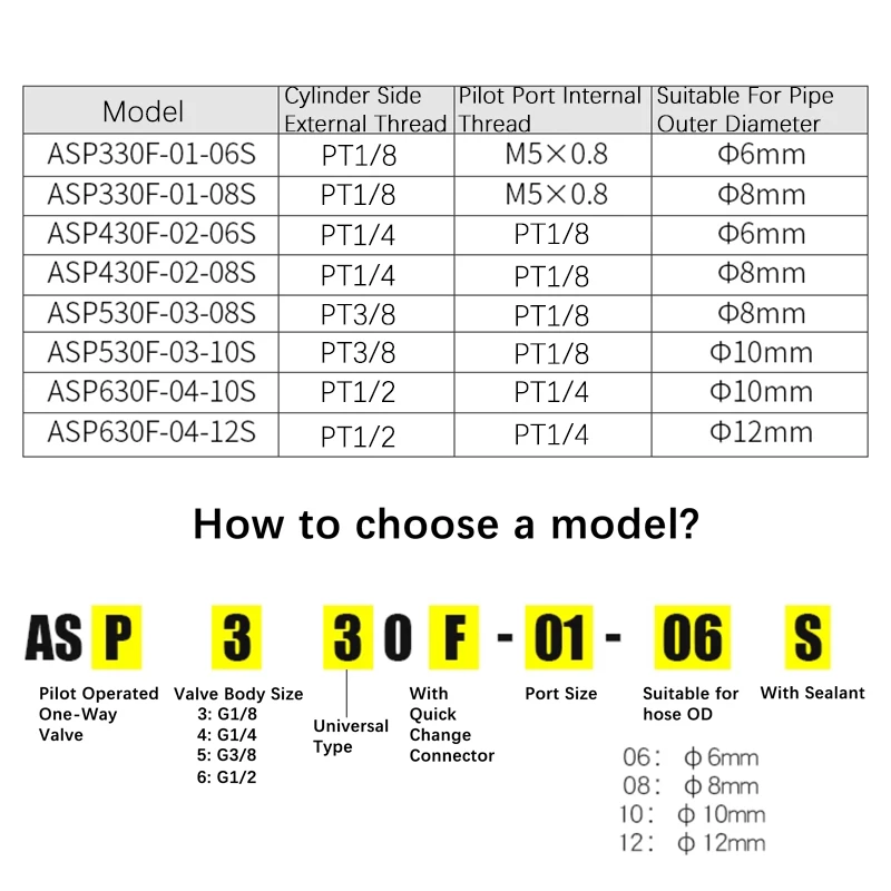 Отзывы о Пилотный обратный клапан регулирования скорости быстрый разъем ASP330F-01-06S ASP330F-01-08S