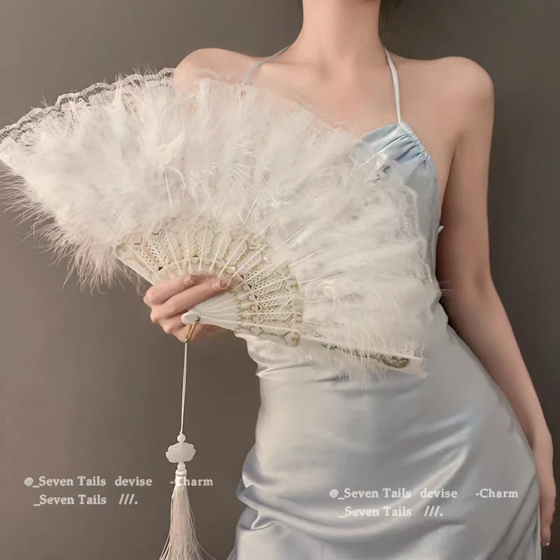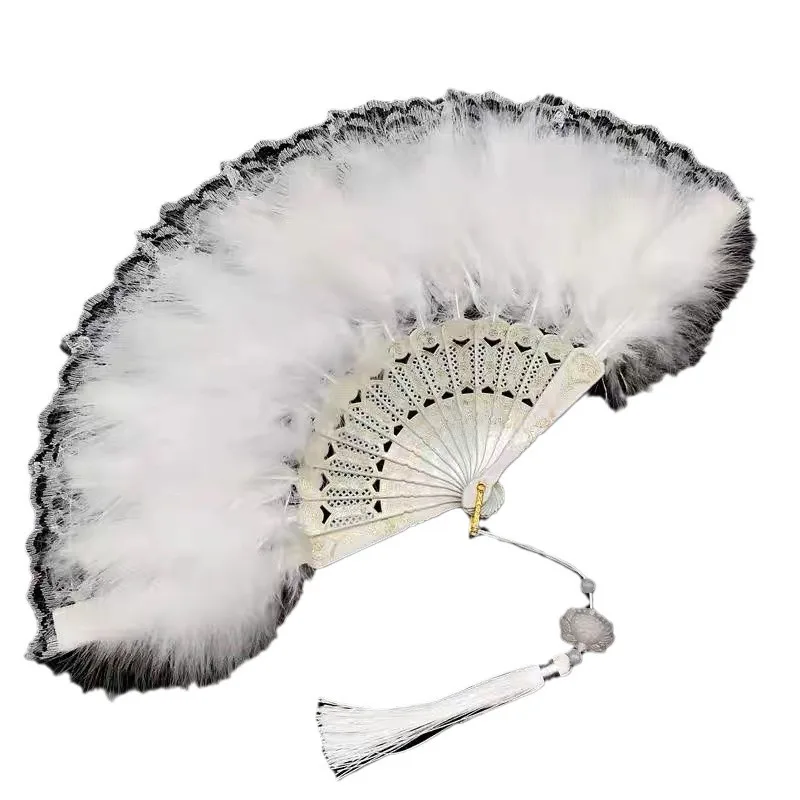 Довольно классический ручной веер модный складной ретро-танцевальный с перьями - купить