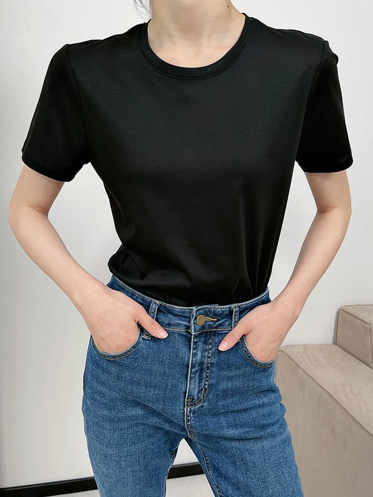 Отзывы о Роскошная брендовая футболка Lorrainey из смеси шелка базовая с круглым вырезом и